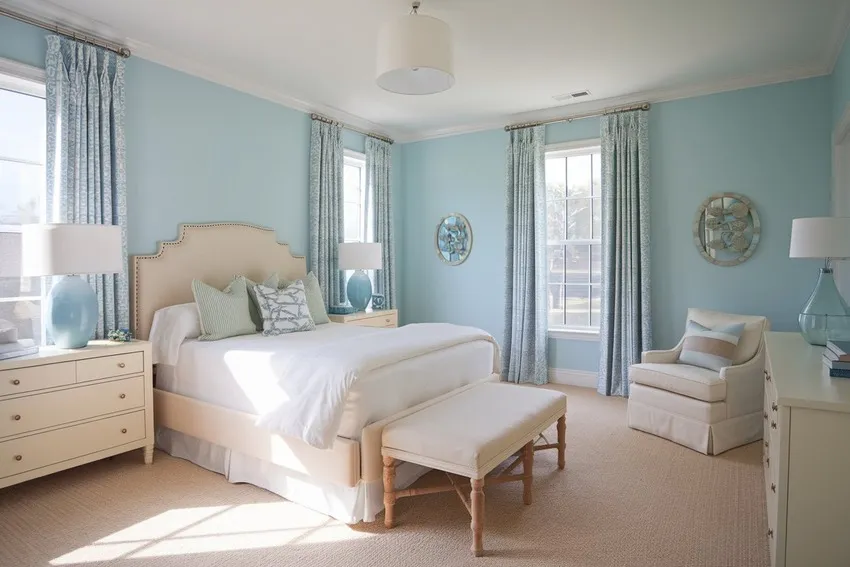 آرامش: آبی ملایم، سبزهای خاکی، بژ